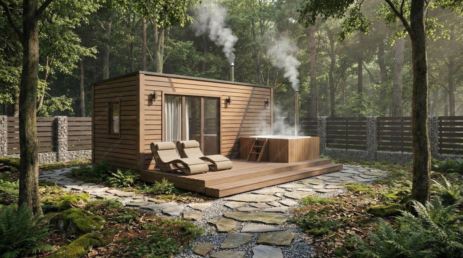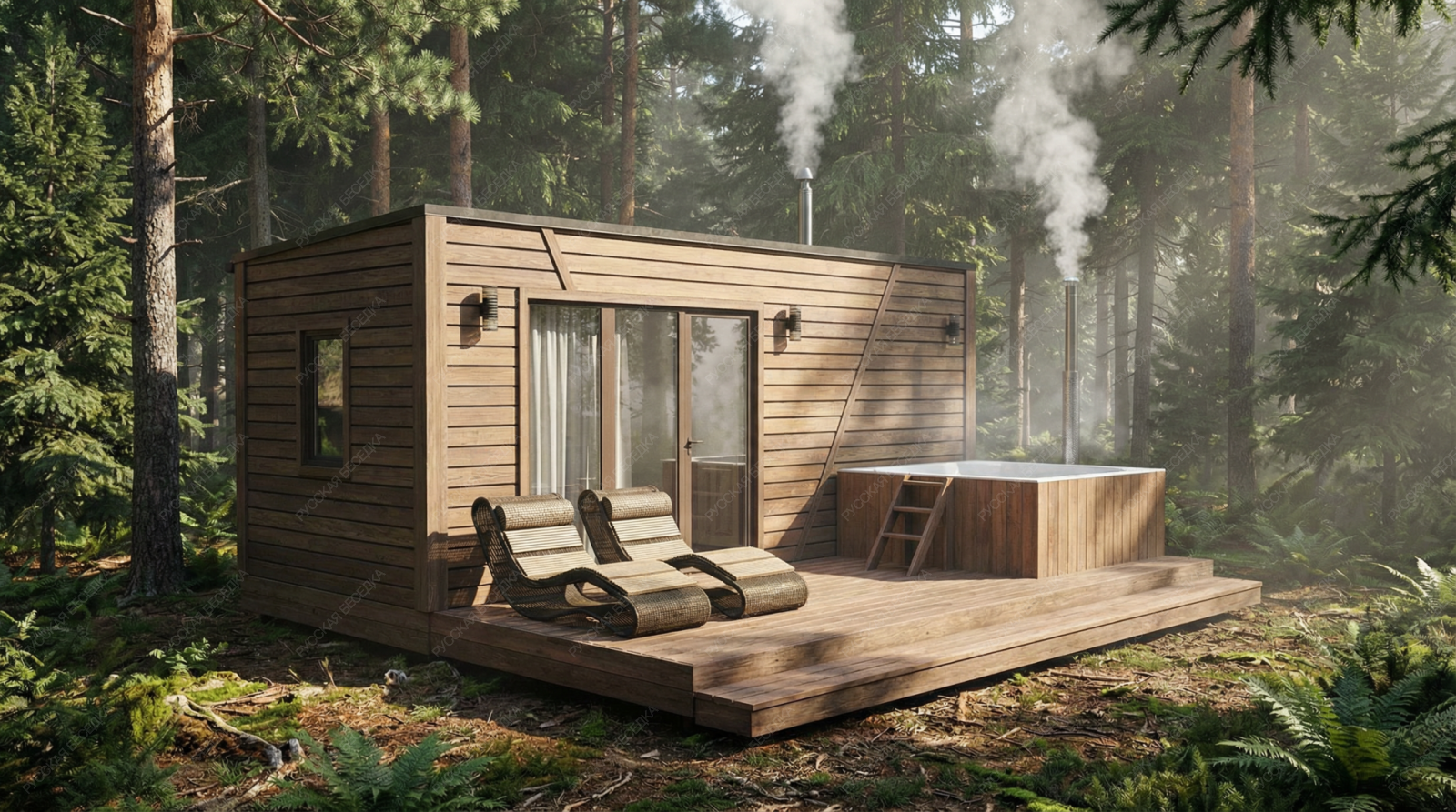 Баня «Равелла» — образец эргономичной и сбалансированной планировки, где даже на ограниченной площади достигнута полная функциональность. Её отличительная черта — симметричная компоновка: площадь открытой террасы (10,76 м²) практически равна площади внутренних помещений, что создает гармоничное равновесие между закрытым пространством и отдыхом на природе.  Внутренняя организация продумана с максимальной рациональностью. Комфортная парная (4,5 м²) с традиционным окном-форточкой обеспечивает качественный легкий пар. Отдельный душевой отсек повышает уровень гигиены и удобства, а уютная комната отдыха (6,97 м²) предназначена для расслабления после процедур. Односкатная крыша и компактные общие габариты (2,5х5,95 м) придают строению современный, аккуратный вид, идеально подходящий для участков с ограниченным пространством.  Качественная древесина и точный конструктив гарантируют эффективное теплосбережение и долговечность. Проект «Равелла» предлагает законченное решение для ценителей классической бани, где в минимальных габаритах собрано всё необходимое для полноценного отдыха и оздоровления, делая эту модель практичным и осознанным выбором.