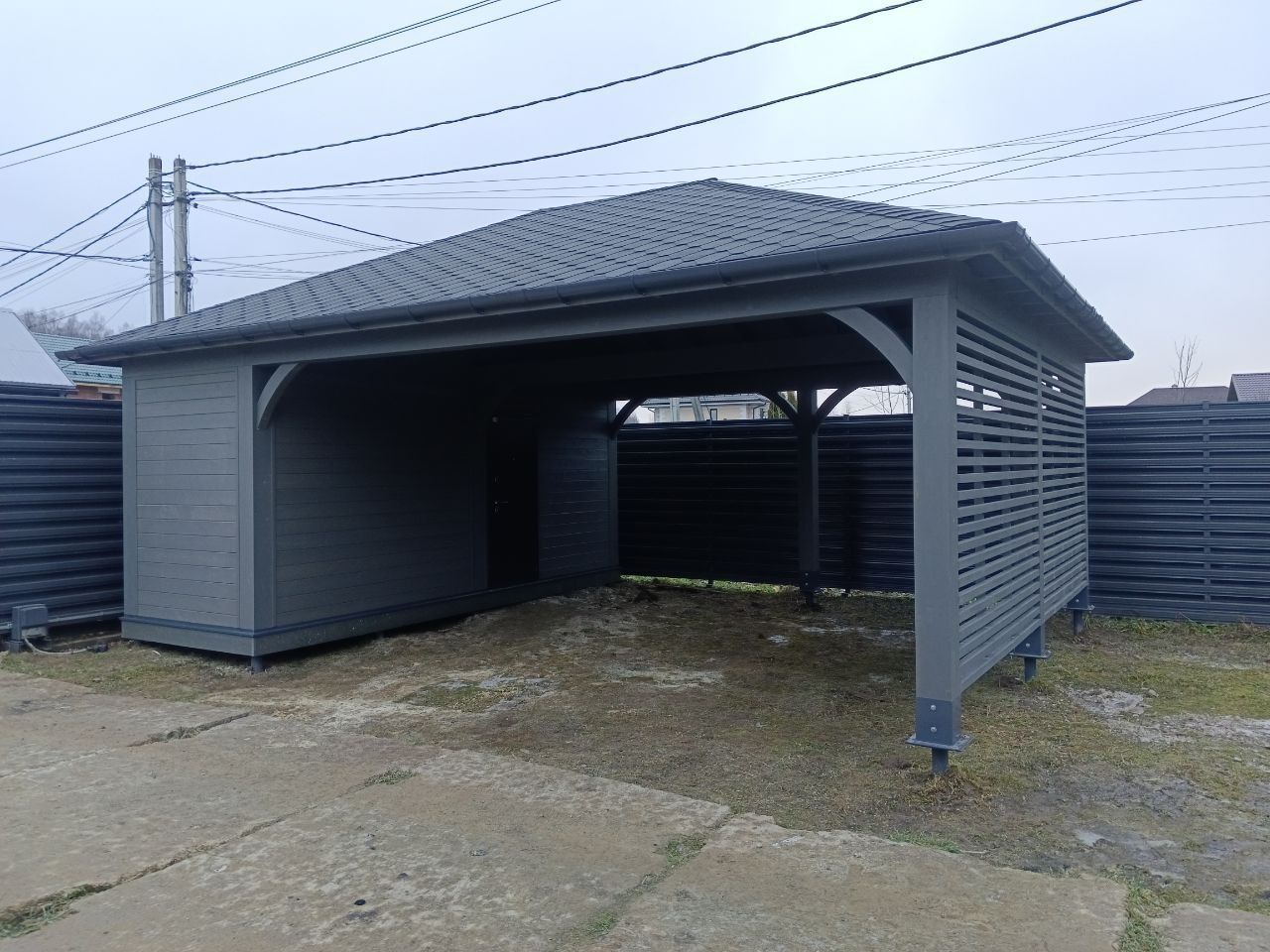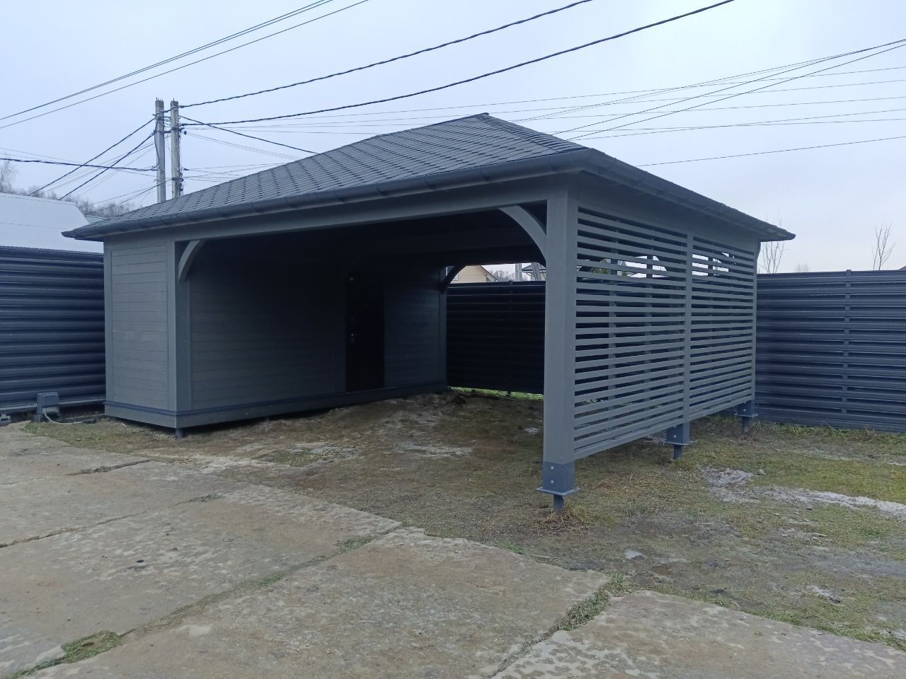 Навес для машин с хозблоком НИКОЛИНО
