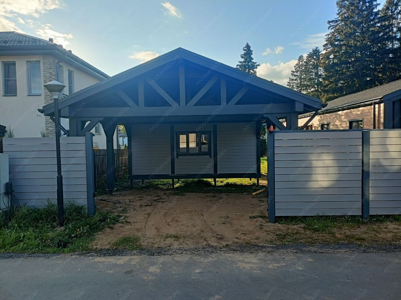 Навес из дерева послужит отличным парковочным местом для одного или нескольких автомобилей.