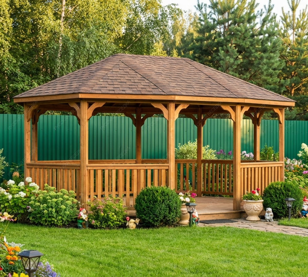 Как любой архитектурный элемент беседка должна отвечать трем основным требованиям – надежность, функциональность и красота. В зависимости от предпочтений владельцев участка и особенностей ландшафта будет определяться конфигурация строения. Наши специалисты помогут с выбором модели беседки, ее конструкцией и дизайнерским решением. Индивидуально для Вас мы разработаем визуализацию и проект конструкции, котрая станет центром внимания вашего участка.