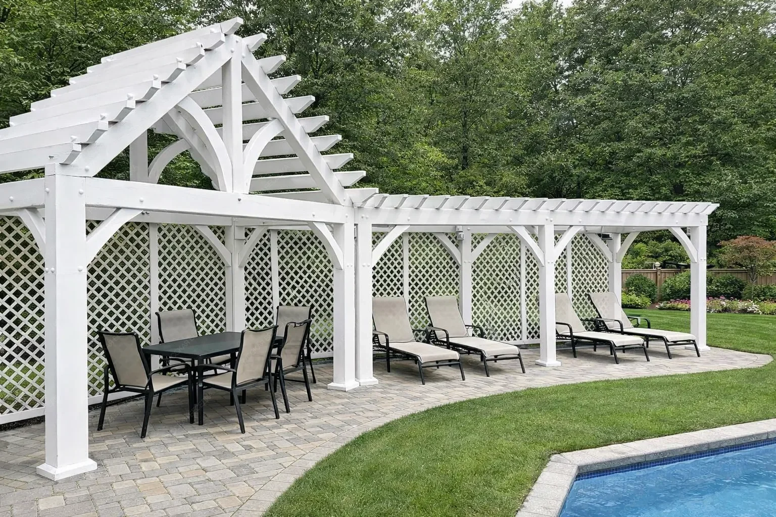 Перголы из дерева сочетают в себе природную красоту и современные дизайнерские решения, создают идеальное место для отдыха и различных видов досуга на открытом воздухе. Перголы могут стоять отдельно или быть частью композиции с другими элементами сада. Деревянная пергола придаст вашему садовому участку теплую и уютную атмосферу.Также пергола может служить опорой для плетущихся растений - только представьте, как приятно находиться в окружении цветущего клематиса или пышных роз! Дополнительные элементы, такие как встроенное освещение, декоративные решетки, качели или скамейки, могут усилить визуальный эффект и создать еще более комфортное пространство. А если в конструкцию перголы добавить подиум, то он может служить местом для расслабления или стать сценой для семейных мероприятий. Пергола с навесом обеспечивает надежную защиту от солнечных лучей, создавая тенистое пространство для отдыха. Она станет идеальным местом для встреч с друзьями, чтения книг или приема пищи на свежем воздухе. Любая пергола не только украшает ваш сад, но и предоставляет функциональное пространство для приятного времяпровождения на природе с семьей и друзьями.