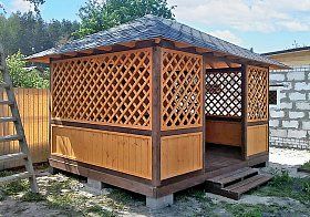 Беседка выполненная из лучших пород древесины, прослужит долгие годы и не потребует особого ухода и обслуживания. Специальные лакокрасочные материалы которые мы используем, предотвратят старение, гниение и заражение грибком конструкции кухни. Используемая огнебиозащита образует полупрозрачное полуматовое покрытие, стойкое к влаге, УФ-излучению, перепадам температуры и другим атмосферным воздействиям.