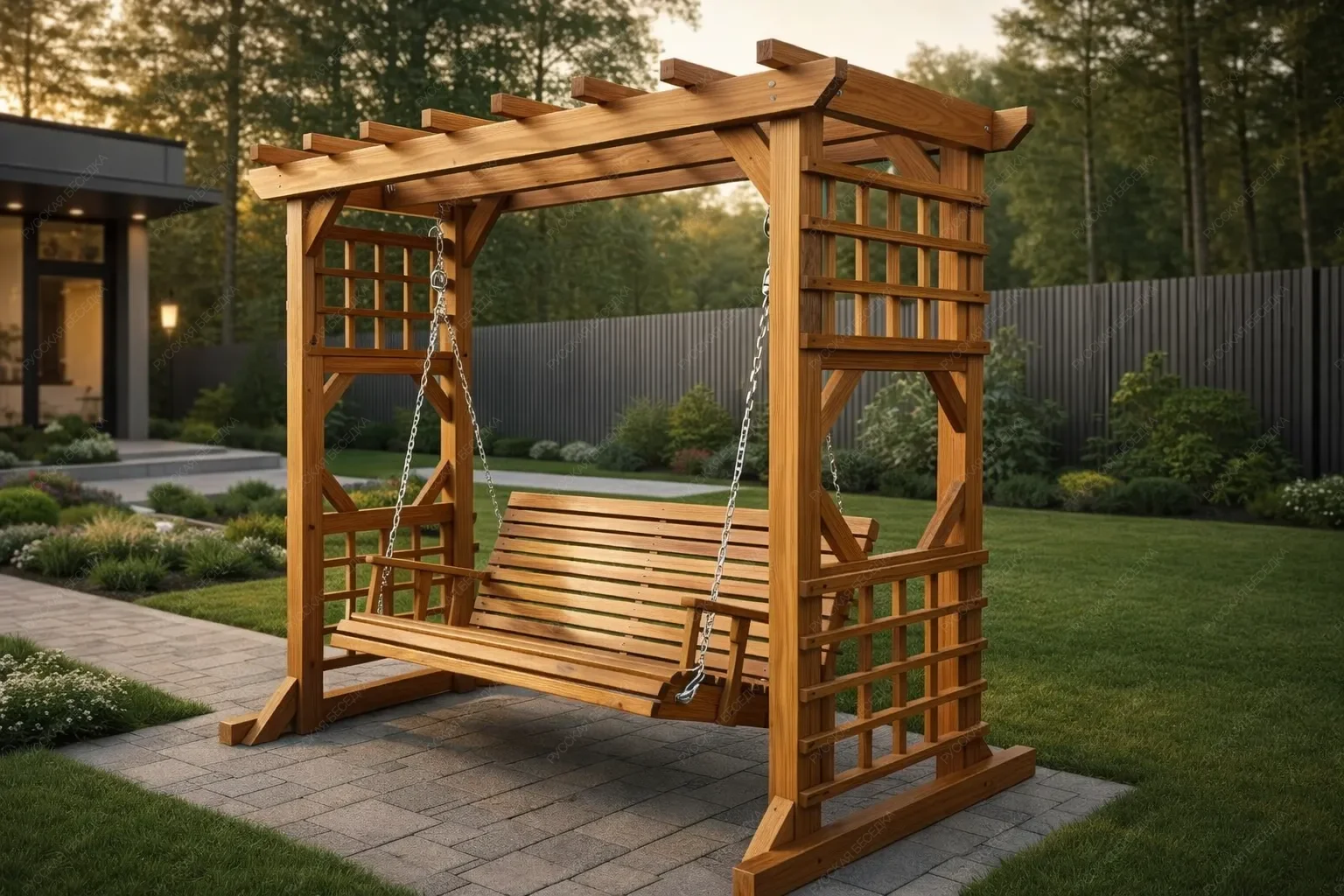 Качели — это незаменимый элемент для создания уютной зоны отдыха на даче. Они позволяют наслаждаться свежим воздухом и красотой природы, создавая атмосферу уюта и релаксации Наши качели отличаются надежностью и комфортом. Они выполнены из качественных материалов, что гарантирует их долговечность и устойчивость к погодным условиям. Эти качели идеально вписываются в ландшафт вашего участка, добавляя ему стильный и современный акцент. Они станут любимым местом для всей семьи, где можно провести время в общении и отдыхе. Создайте на своей даче уголок спокойствия и уюта с нашими садовыми качелями, которые подарят вам множество приятных моментов на свежем воздухе!