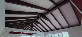Потолок не подшит, видна стропильная система